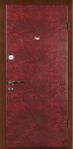 Отделка двери. Для отделки дверей эконом-класса используется порошково-полимерное напыление, винилискожа с различными вариантами обивки, ламинат. Эти материалы можно использовать в различных сочетаниях как с внешней, так и с внутренней стороны двери. Преимущества этих видов отделки - большое разнообразие цветов и простора в уходе. Такие двери легко моются. Минусы - если порошково-полимерное покрытие имеет хорошие антивандальные свойства, и поцарапать его очень непросто, то дверь, декорированную винилискожей порезать очень легко. Выбирая отделку важно помнить правило: материалы, пригодные для эксплуатации в условиях улицы можно использовать для отделки квартирных дверей, наоборот - ни в коем случае нельзя.