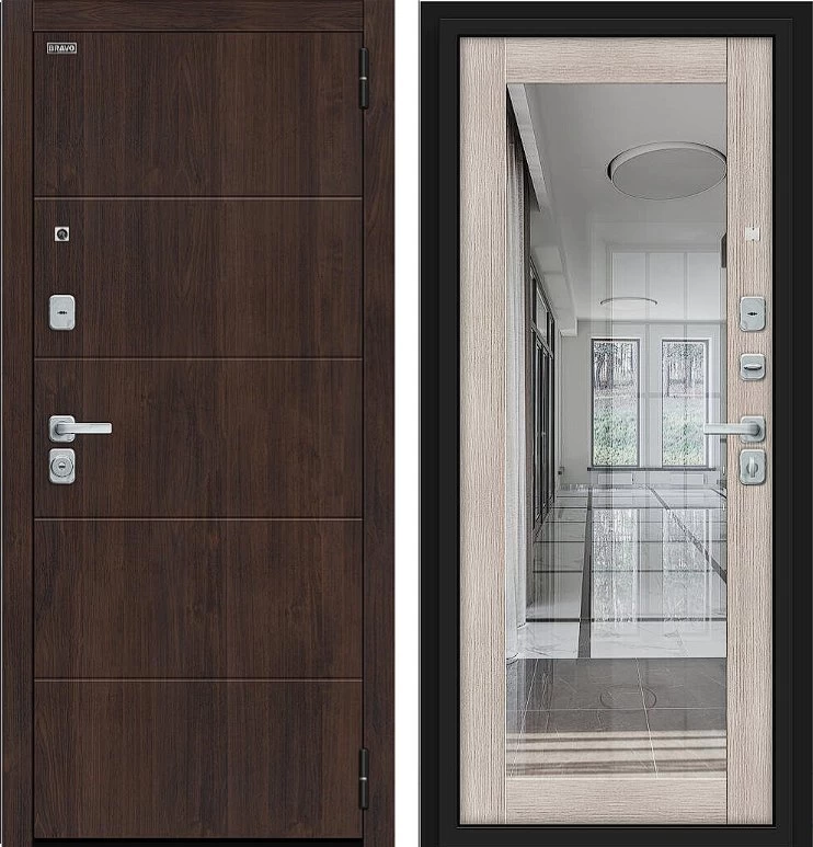 Надежная входная Дверь Браво Флэт/BChrome Almon/Cappuccino Melinga премиум класса по цене 42 435 руб. Большая толщина стали защитит от проникновения в ваш дом, квартиру или коттедж. Используется очень качественная фурнитура: замки, цилиндры, ручки, защелки. Покрытие и отделка двери изготовлено под внимательным контролем производителя. Дверь имеет долгий срок службы и гарантию.