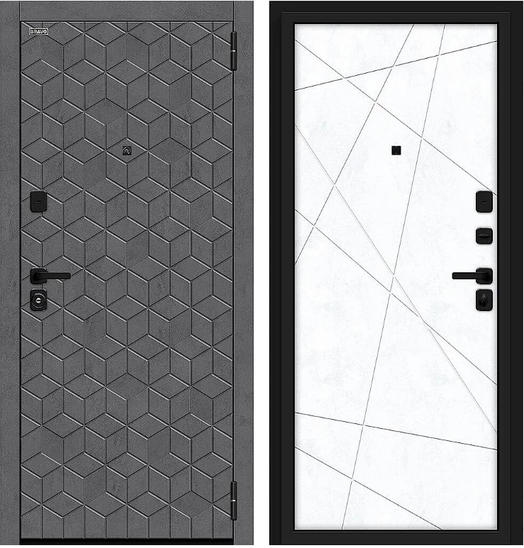 Надежная входная Дверь Браво Кьюб/SBlack Slate Art/Snow Art премиум класса по цене 40 385 руб. Большая толщина стали защитит от проникновения в ваш дом, квартиру или коттедж. Используется очень качественная фурнитура: замки, цилиндры, ручки, защелки. Покрытие и отделка двери изготовлено под внимательным контролем производителя. Дверь имеет долгий срок службы и гарантию.