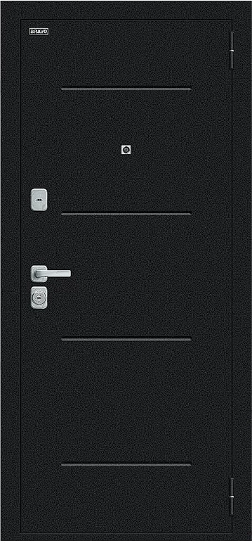 Надежная входная Дверь Браво Техно/BChrome Букле черное/Wenge Melinga премиум класса по цене 34 735 руб. Большая толщина стали защитит от проникновения в ваш дом, квартиру или коттедж. Используется очень качественная фурнитура: замки, цилиндры, ручки, защелки. Покрытие и отделка двери изготовлено под внимательным контролем производителя. Дверь имеет долгий срок службы и гарантию.